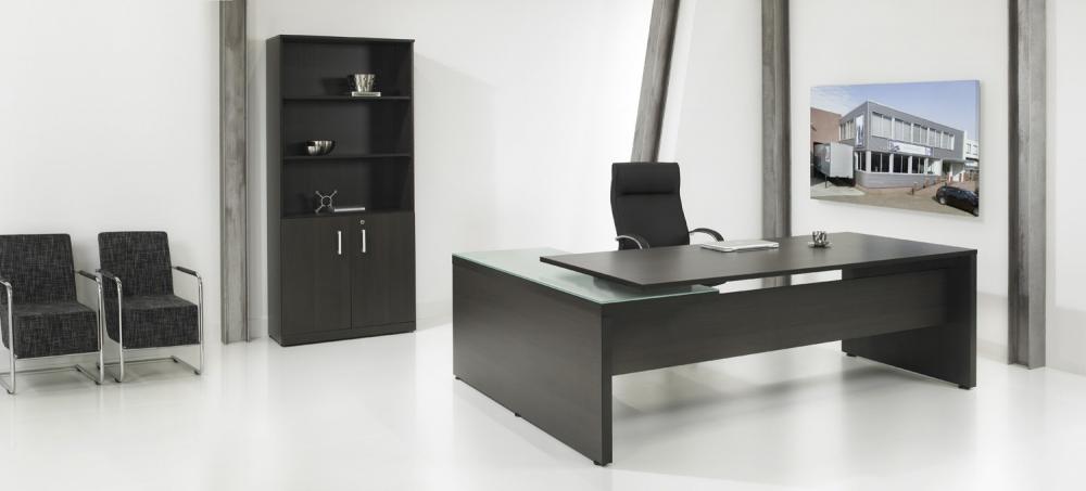 Complete directie werkplek met hoekbureau, directiestoel en archiefkast. De werkplek wordt compleet gemonteerd geleverd zonder extra kosten!